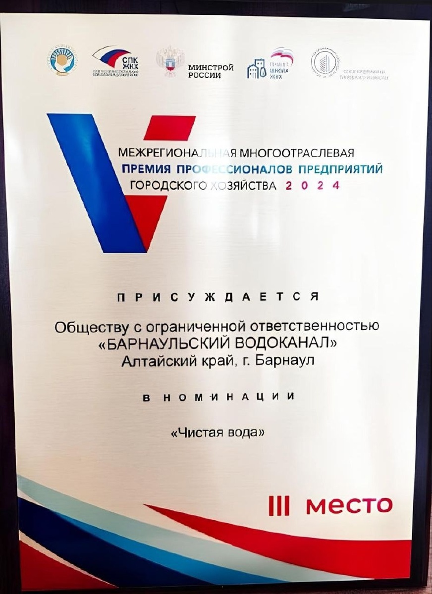 👍 «Росводоканал Барнаул» - призер V «Межрегиональной многоотраслевой Премии профессионалов предприятий городского хозяйства