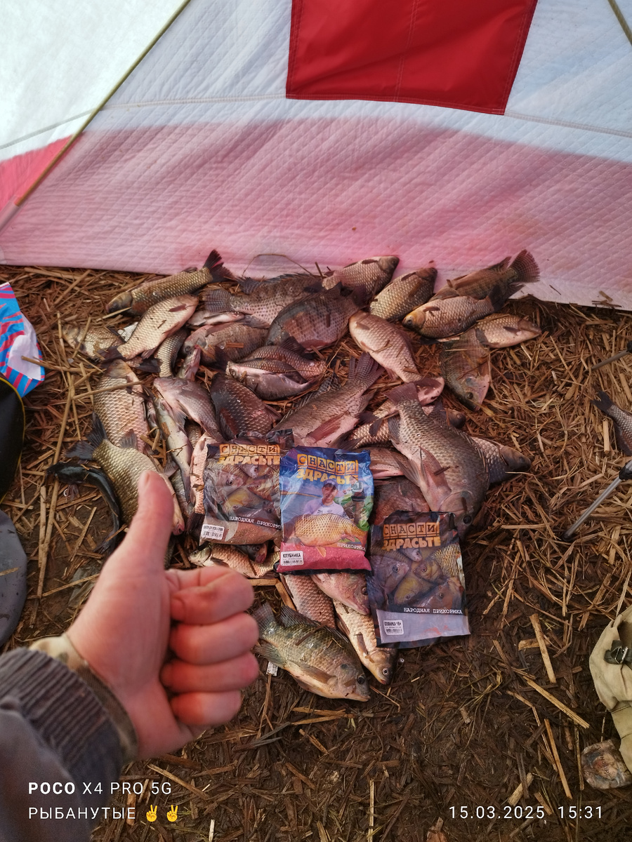 Приветствую Вас Друзья ✌️✌️✌️ Сгонял очередной раз на Любимое Чудо-Озеро Удомля. Даже не знаю с чего начать Свой пост. Давайте начнём с Начала: Изначально Бог создал Землю 😊😊😊 Далее Адама из его ребра Еву. Далее дал мужчине удочку. После этого Мужики стали пропадать на рыбалке 🎣🎣🎣🎣 Теперь по делу: 2-ой сброс Сразу замешал прикорм серии Снасти Здрасьте Для Флета - для сосок и пружин. Для дюзы или колодца - клубника. День приезда: Приехал в районе 17.00, места были но немного, любимое место было занято, поговорив выяснилось что оно в течении 2х часов освобождается, пообщавшись пока располагался выяснил, что рыба клевала в основном на близком расстоянии. Фидера уже ставил в сумерках, решил один поставить на близком расстоянии, другой на более дальнем. Так как спать не хотелось отловил всю ночь (зря , лучше бы ушёл спать). За ночь было поймано всего навсего пару карасей и одна телапка весом грамм 450. День 2-ой С рассветом Карасик октевировался, и в час по чайной ложке стал