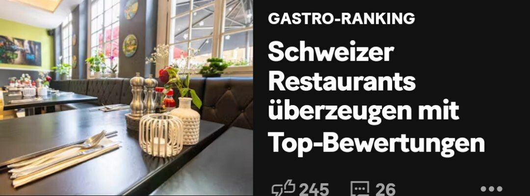 📌 " Швейцарские рестораны в 2024 году были популярны как никогда: со средним баллом удовлетворенности 85 из 100 баллов они опережают своих немецких конкурентов, набравших 84,8 балла.