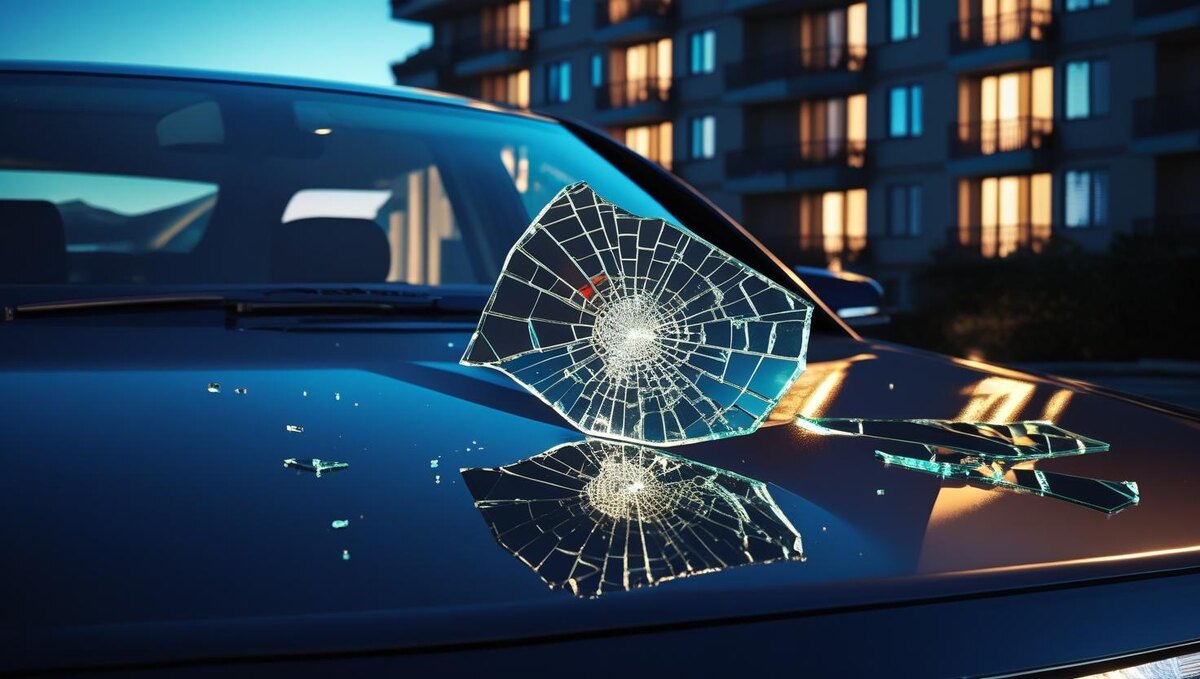 Ночью с балкона одной из квартир многоэтажки выпал кусок стекла и упал на припаркованный внизу автомобиль.