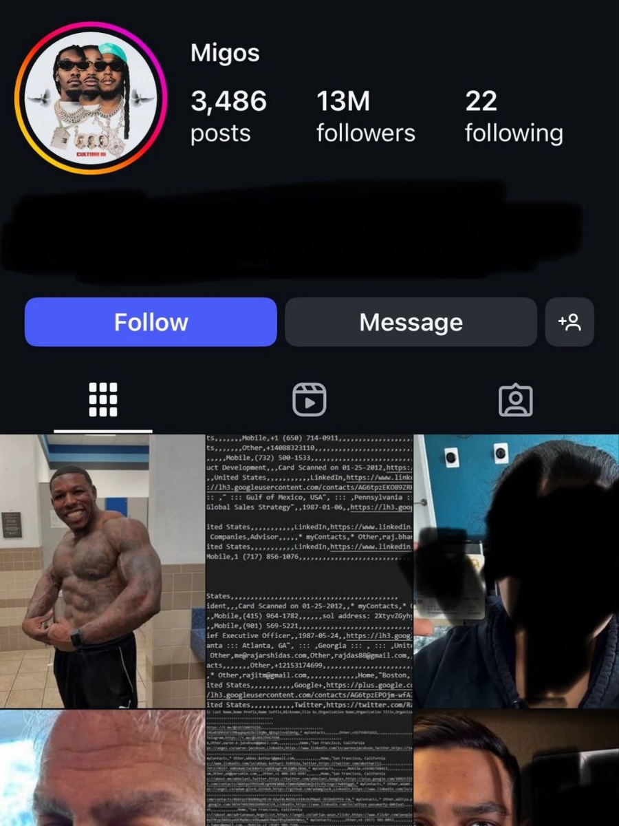 ❌ ИНСТАГРАМ-АККАУНТ «MIGOS» БЫЛ ВЗЛОМАН! Хакеры использовали аккаунт для публикации личных данных Раджа Гокала, сооснователя крипто блокчейн-платформы Solana. В посте были размещены фотографии паспортов, водительских удостоверений, а также информация о Гокале и его супруге. В подписи хакеры требовали выкуп, угрожая дальнейшим сливом данных. «Ты должен был заплатить нам 40 биткоинов» 💀 FML MATTERS
