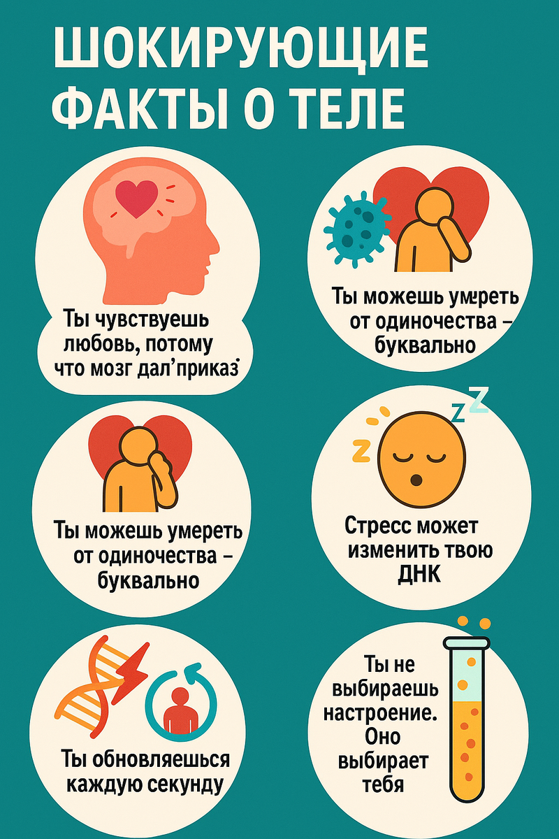 🧬 Шокирующие факты о теле: ты — не тот, кем себя считаешь