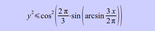 Это означает, что сама область, изображающая множество точек, на координатной плоскости не будет выходить за пределы линий x = ±2π/3.