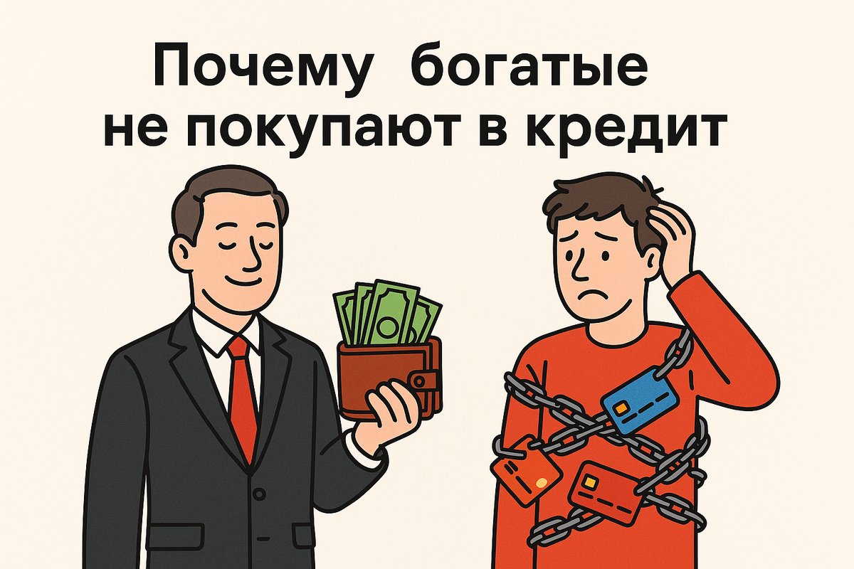Казалось бы, у богатых полно денег — и они могут позволить себе всё. Но именно они чаще платят наличными, а не берут кредиты. Почему? --- 1. Они умеют ждать Богатые не гонятся за немедленным удовлетворением. Они знают: кредит — это способ купить то, что не можешь себе позволить, и переплатить за это. Они лучше накопят и купят без процентов. --- 2. Деньги = свобода, а не вещи Кредиты привязывают к обязательствам. А свобода — это главное богатство. Богатые ценят время и выбор, а не статусные покупки. --- 3. Кредит — это минус к капиталу Каждый рубль, который ты отдаёшь банку, не работает на тебя. Он работает на банк. Богатые предпочитают, чтобы деньги работали на них — через инвестиции, бизнес, накопления. --- 4. Они считают проценты Ты берёшь в кредит телефон за 80 000 рублей — а отдаёшь 110 000. За что? За возможность "понравиться" кассиру в салоне связи? Богатые не идут на такие сделки. --- 5. Они не покупают ради впечатления Часто кредиты — это способ показать д