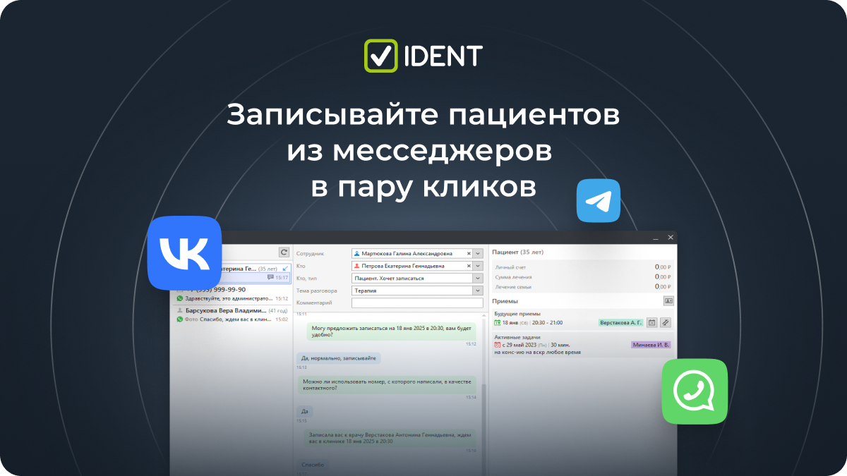 В новой версии IDENT 296 теперь можно работать с чатами из WhatsApp, Telegram и ВКонтакте✅