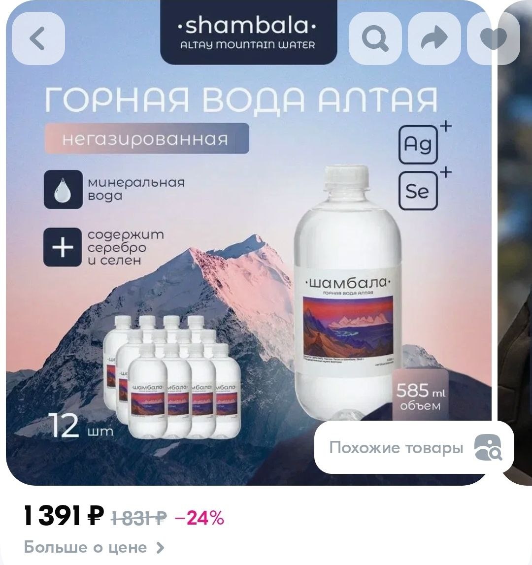 Минеральная вода. Карточка, которую не хочется рассматривать --- Главный слайд: — Само изображение продукта очень мелкое. Мы смотрим не на воду, а на горы. — А должно быть наоборот: вода в фокусе, горы — фоном. — Фото воды некачественное, не вызывает желания купить. — Инфографика слабая, не передаёт ключевых особенностей продукта. — Не видно, что в наборе 12 штук — а это важное УТП! Это должно сразу бросаться в глаза. --- Внутренние слайды: — Использованы клипарты, изображение — ненастоящее, этикетка, судя по всему, наложена с помощью нейросетки. — Фото выглядят искусственно. Доверия не вызывают. — Инфографика мелкая, нечитабельная, особенно на прозрачной подложке. — Много текста, шрифт мелкий, разнобойный, смотреть тяжело. — Таблица с минерализацией — ок, но непонятно, зачем все эти минералы. Не раскрыта выгода для покупателя. --- Общее впечатление: — Слайдов мало, карточка ощущается сырой. — Фото продукта мелкое и некачественное. — Инфографика перегружена, визуально слабая, неч