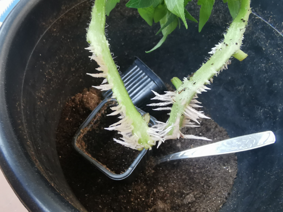 За 11 дней обрезанные верхушки нарастили щетину корней в воде и отправлены временно в небольшие горшочки.