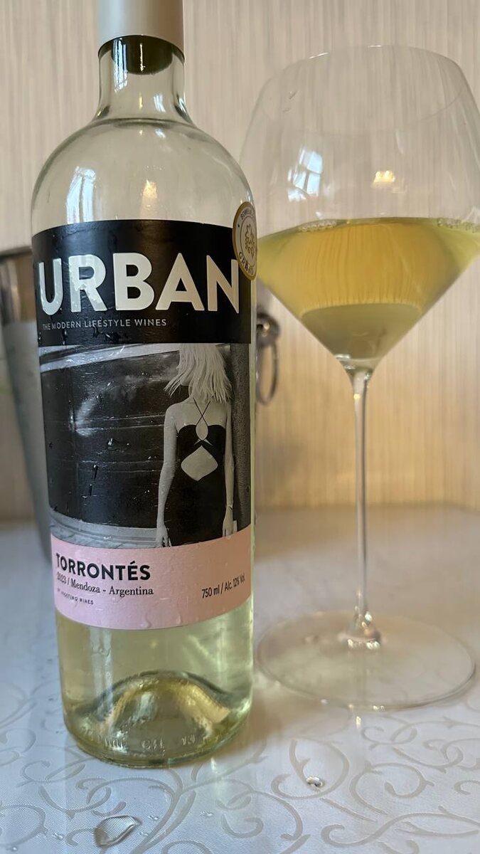 Urban Torrontes, 2023 Элу продолжает рассматривать полки сети Отдохни! "Мендоза, Аргентина. Торронтес - сорт винограда, котоый был выведен из белых сортов винограда в Аргентине. Аромат свежий и при этом глубокий, не резкий. Зрелые мягкие яблоки, не Гренни Смит, скорее Антоновка. Аромат и вкус сложный - здесь и фрукты, и цветы. И весёлая кислинка. Нет у риделя бокала под Торронтес, пожтому попробовал из разных. Лучше всего раскрылся из бокала под Шардоне. 770 р. в Отдохни в апреле 2025. Я брал осенью, было дешевле. У этой марки есть еще Каберне фран, вот он мне вообще не зашел. А Торронтес брать, эмоциональное вино."