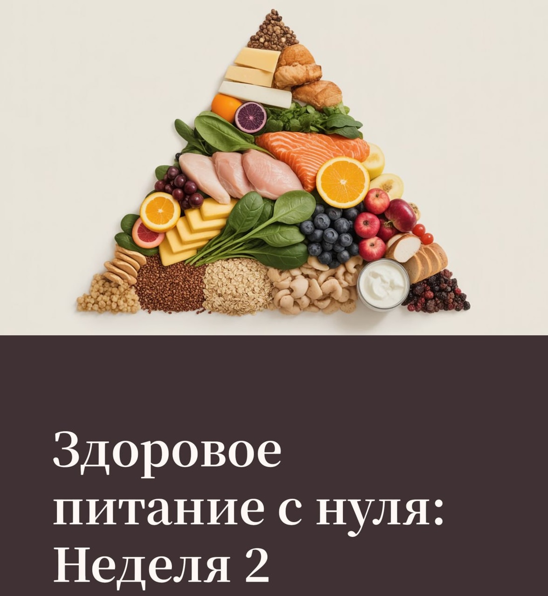 Навык 2 — Строим пирамиду питания Учимся распределять еду в течение дня по её составу в соответствии с принципами пирамиды питания: 📌углеводы - самая большая порция на завтрак, чуть меньше на обед, ужин без углеводов 📌овощи и/или фрукты включаем в каждый прием пищи 📌белок (мясо, рыба, яйца, морепродукты, растительные белки – бобовые, орехи) - 1-2 порции в день 📌молочные продукты (йогурты, творог, сыр) – 1-2 порции в день 📌полезные жиры и приправы – в небольшом количестве добавляем в любой прием пищи 📌сладости, выпечка, насыщенные жиры - чем реже, тем лучше ПЛАН НА НЕДЕЛЮ: ✔️ День 1–2: отслеживаем свой режим - Фиксируем, во сколько обычно едим (завтрак, обед, ужин, перекусы). - Анализируем, какие продукты попадают на каждый приём пищи. - Задача: не менять резко, а просто понаблюдать — в какое время мы чаще едим углеводы, а в какое — белки. ✔️ День 3: начинаем перестройку — злаки и углеводы утром - Переносим кашу, хлеб, картофель, сладкие овощи, фрукты и даже десерты на завт