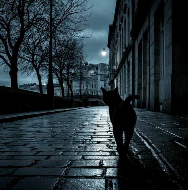 Стояла тихая ночь. Где-то ещё фонари освещали тёмную улицу. Но большинство фонарей погасло. Из-за заброшенного дома что-то бесшумно выскользнуло и направилось в сторону набережной. Это был кот, Карайт. Чёрный, как тьма, он был признан самым ловким среди всех животных этого небольшого города. И самым загадочным среди людей. Он мог появиться где и когда угодно. Когда он появлялся, то в этом месте всегда происходили странные события. И это было главной загадкой, которую уже несколько лет не мог разгадать ни один человек. За этим котом пытались установить слежку, но Карайт исчезал, его присутствие можно было заметить лишь по следам. Но и они обрывались... Никто не знал, где живёт Карайт. Однако, были предположения. Люди думали, что он может жить в одном из заброшенных домов. Но подходить к этим домам боялись. Вокруг некоторых заброшенных домов ставили заборы. Но был один маленький домик на набережной, в который не раз пытались заглядывать и полицейские, и обычные жители. Но попасть в нег