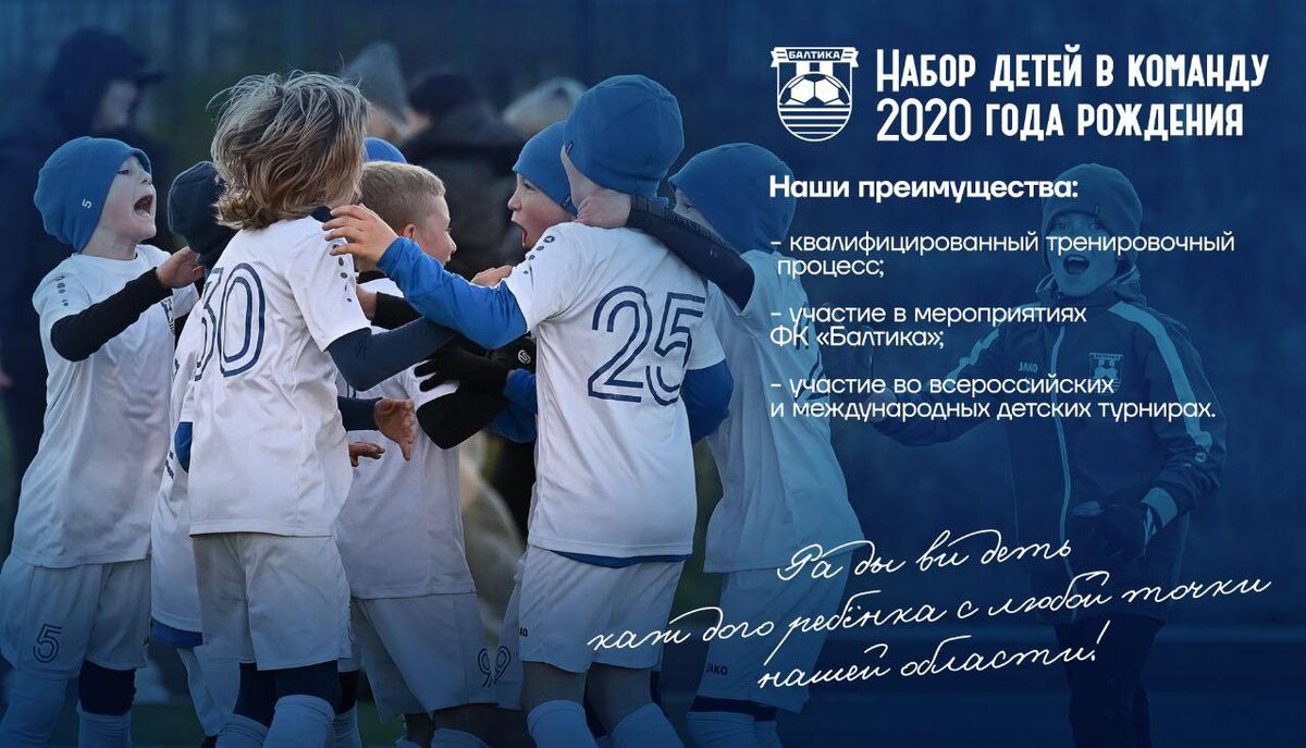 СТАНЬ БАЛТИЙЦЕМ 🌊 ⚡️ Наша академия объявляет набор юных футболистов 2020 года рождения. 🏟 Тренировочный процесс проходит на футбольных полях стадиона «Балтика». Предварительная запись по номеру телефона: +79062148223 (Вячеслав Викторович) Присоединяйся к балтийцам и стань частью бело-синей семьи 💙