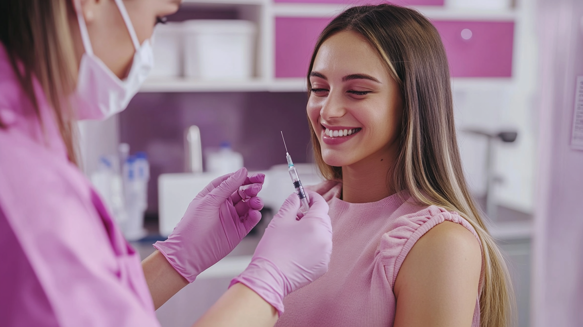 - 💉 Косметолог наносит анестезию для комфортного введения препарата.