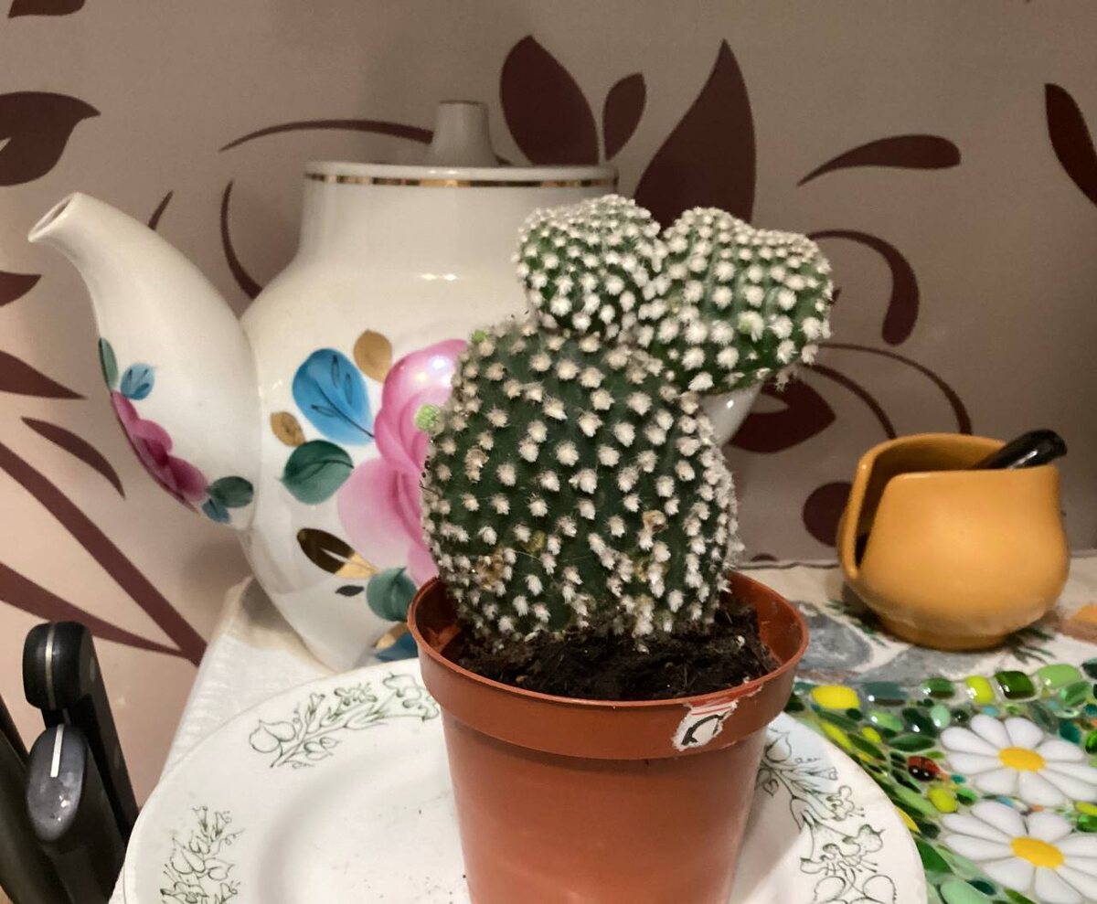 Когда-то была у меня коллекция цветущих кактусов. И решила кошка Сонечка, что жевать кактусы - это занятие как раз для кошечки. Вытаскивать пинцетом колючки из языка кошки - то еще приключение. Раздарила я тогда свои кактусы. И вот сегодня не смогла пройти мимо этой очаровашки.