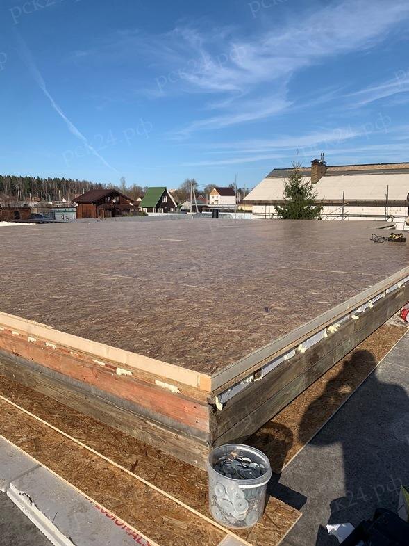 Мембранная кровля в Щёлково смонтирована кровельщиками РСК-24.На фото - этапы монтажа. Площадь крыши - 180 м2.
