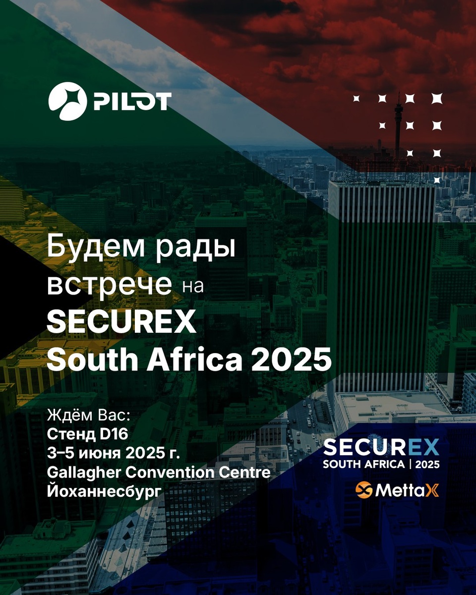 PILOT примет участие в Securex South Africa 2025 Рады пригласить вас на Securex South Africa 2025 — одно из ведущих мероприятий в сфере безопасности и технологий в регионе. Совместно с MettaX продемонстрируем, как с помощью IoT можно повысить эффективность и контроль над транспортными операциями. 📌 Стенд D16 📅 3–5 июня 2025 года 📍 Gallagher Convention Centre — Йоханнесбург Мы представим ещё более мощное портфолио решений, разработанных для транспорта, логистики и видеонаблюдения: 💻 Платформа PILOT — GPS-мониторинг в реальном времени, телеметрия и контроль автопарка 📹 PILOT Video — камеры с онлайн-трансляцией, DMS, ADAS и многое другое 🔐 GARM — универсальные системы для безопасности и IoT ✅ Масштабируемые технологии, адаптированные к требованиям регионального рынка 🌍 Африка движется к более умным и связанным операциям — и PILOT готов возглавить этот путь. 📢 Ждём вас — зарегистрируйтесь здесь.
