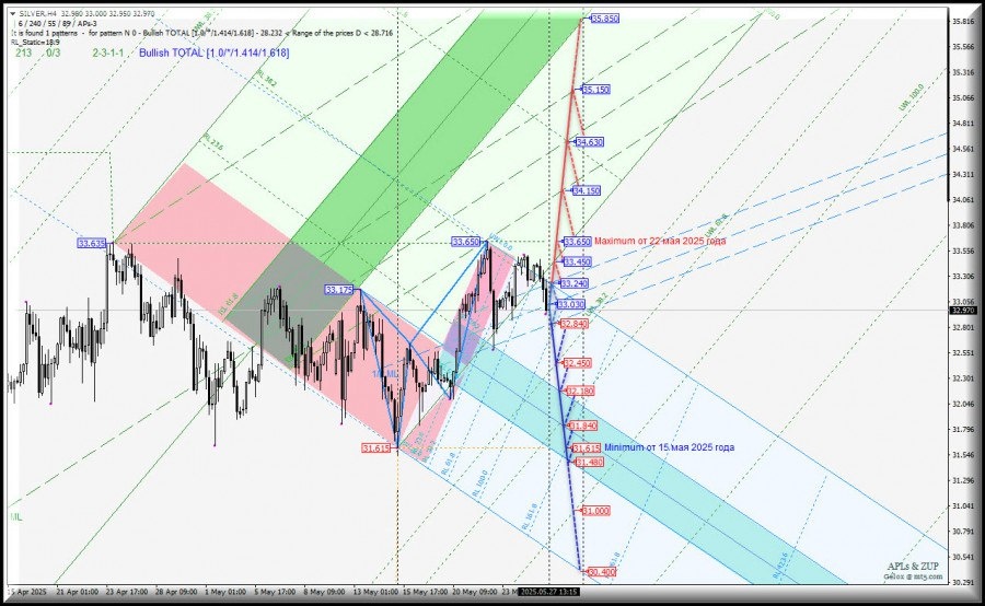 https://basechop.ru/wordpress/?p=44380 Операционный масштаб Minute (таймфрейм h4) Основные технические уровни для торговли Spot Silver– h4 – обзор вариантов движения c 28 мая 2025 года. Предыдущий обзор Spot Gold (таймфрейм h4) от 14.05.2025 г. 10:10 ____________________ Spot Gold Развитие движения Spot Silver-h4 с 28 мая 2025 года продолжится исходя из отработки и направления пробоя границ канала 1/2 Median Line (33.240 – 33.030 – 32.840) нисходящих вил младшего операционного масштаба Minuette-h1. Нисходящее движение: Пробой нижней границы канала 1/2 Median Line Minuette-h1 – уровень поддержки 32.480 – сделает актуальным продолжение нисходящего движения Spot Silver к предупредительной линии LWL38.2 (32.450) вил старшего операционного масштаба Minute-h4 и к границам зоны равновесия (32.180 – 31.480 – 31.480) вил младшего операционного масштаба Minuette-h1 с учетом отработки minimum 31.615 от 15 мая 2025 года. Восходящее движение: При пробое уровня сопротивления 33.240 на…