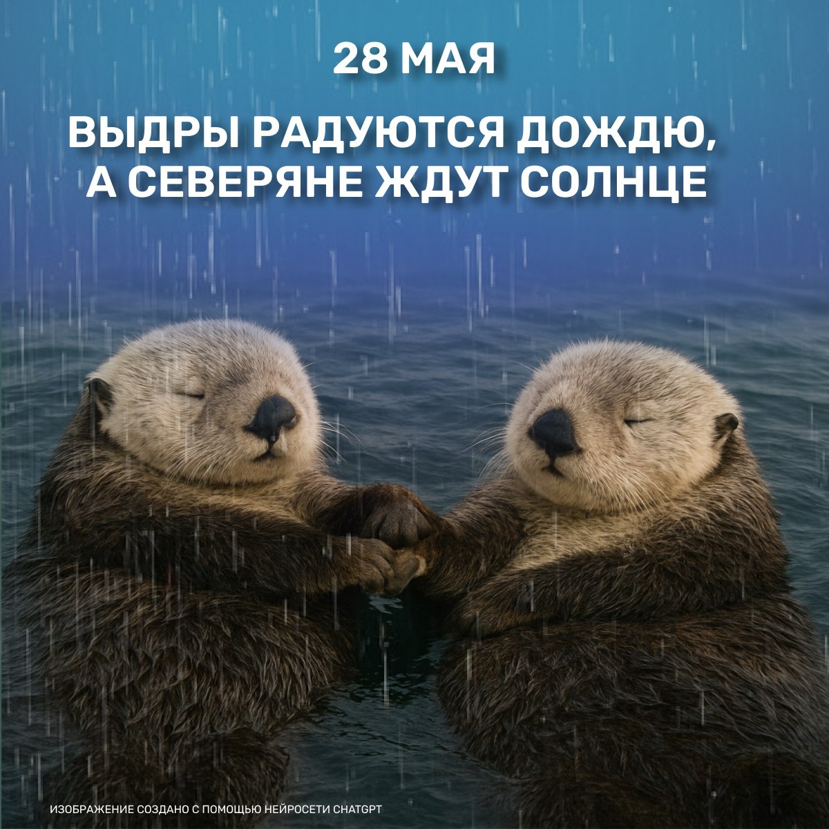 ✨🦦 В Кольском Заполярье 28 мая, в День майонеза и День выдры, ожидается облачная с прояснениями погода