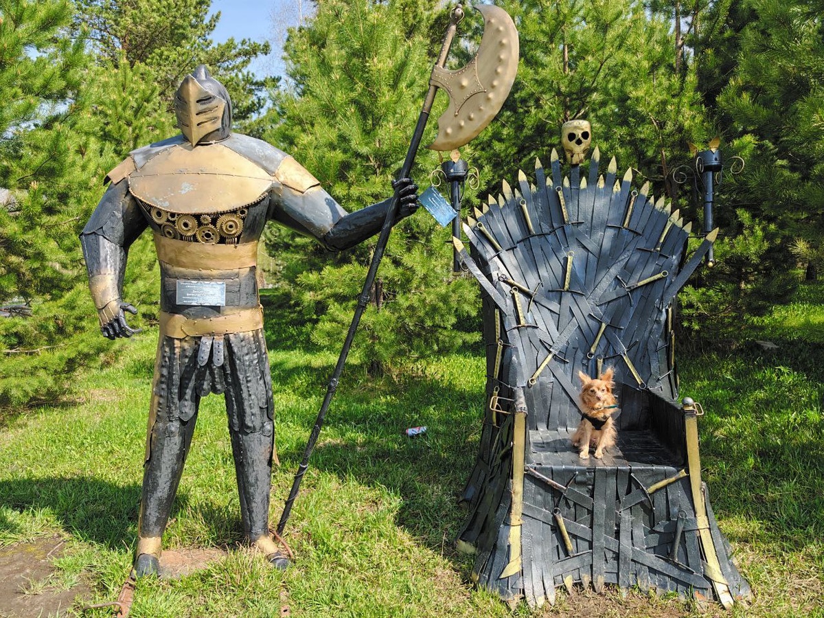 Гав-гав, это снова я, Хэппи! Продолжаю свою увлекательную собачью повесть! После ночёвки в Кемерово мы направились в сторону недостроенной Крапивинской ГЭС. Путь к ГЭС шёл через посёлок Зеленогорский. Там на карте была пометка — Аллея Интернационалистов. Ничего особенного вроде бы. Но когда мы проезжали мимо… нос мой уловил что-то интересное, а глаза моих друзей заметили целый волшебный парк! После того как мы осмотрели плотину у ГЭС, мы вернулись и зашли в этот парк. О, как же там круто! Везде железные штуковины — трубы, пружины, цепи, куски металла. Но не просто валяются, а превращены в настоящих чудиков: огромных мух, комаров, гусениц и фантастических существ! У каждой фигуры столько мелких деталей — я всё обнюхал и не мог нарадоваться! Такое ощущение, что попал в сказку, сделанную из железа! В 2013 году Анатолий Поротов начал восстанавливать место отдыха в Зеленогорском вместе с местными жителями, создавая оригинальные металлические скульптуры. Сейчас, находясь на пенсии, он