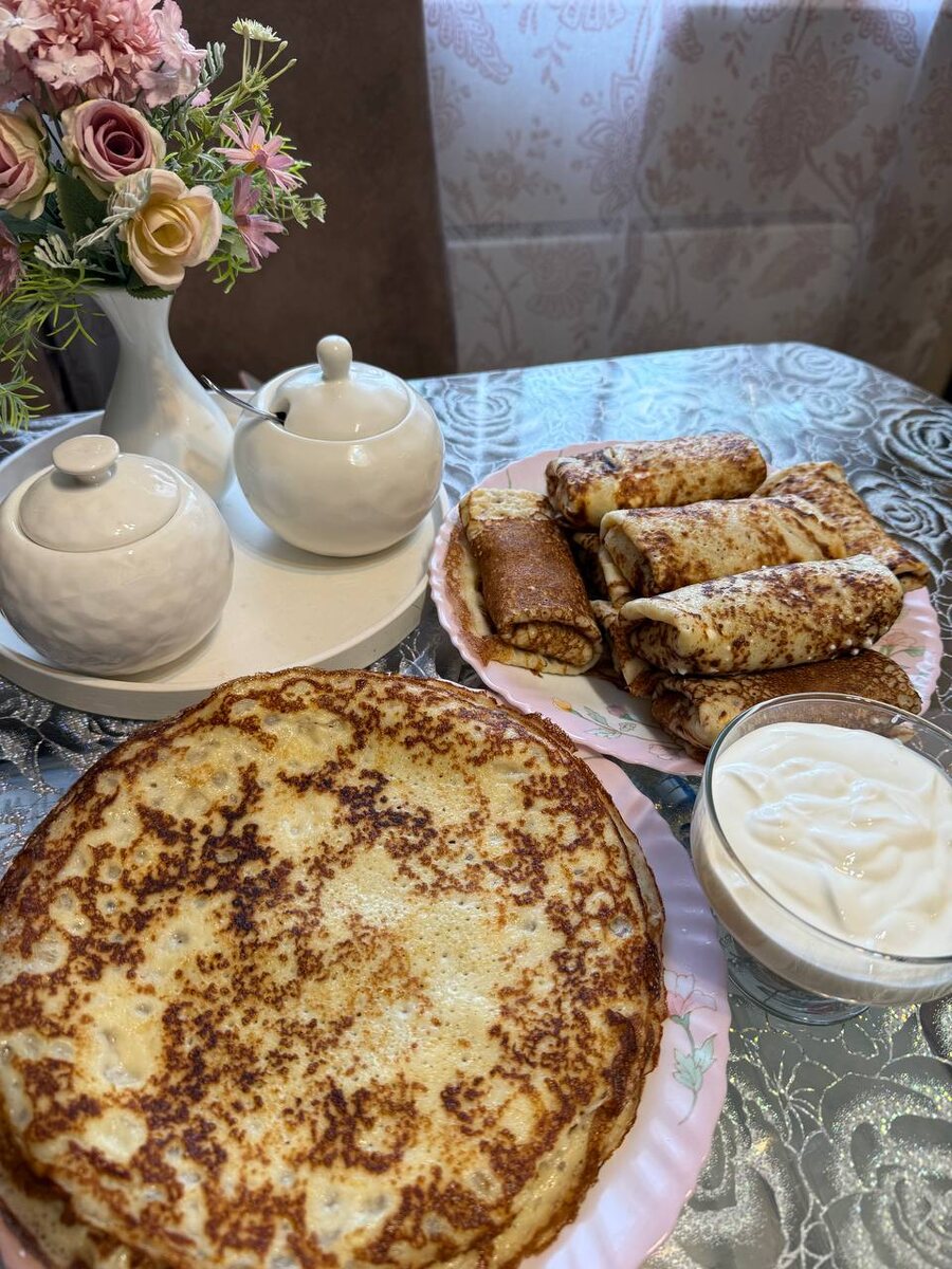 Напекла блинов. Половину сделала фаршированные с творогом. Ой вкусные блиночки, да со сметанкой! 🥞☕️🥰