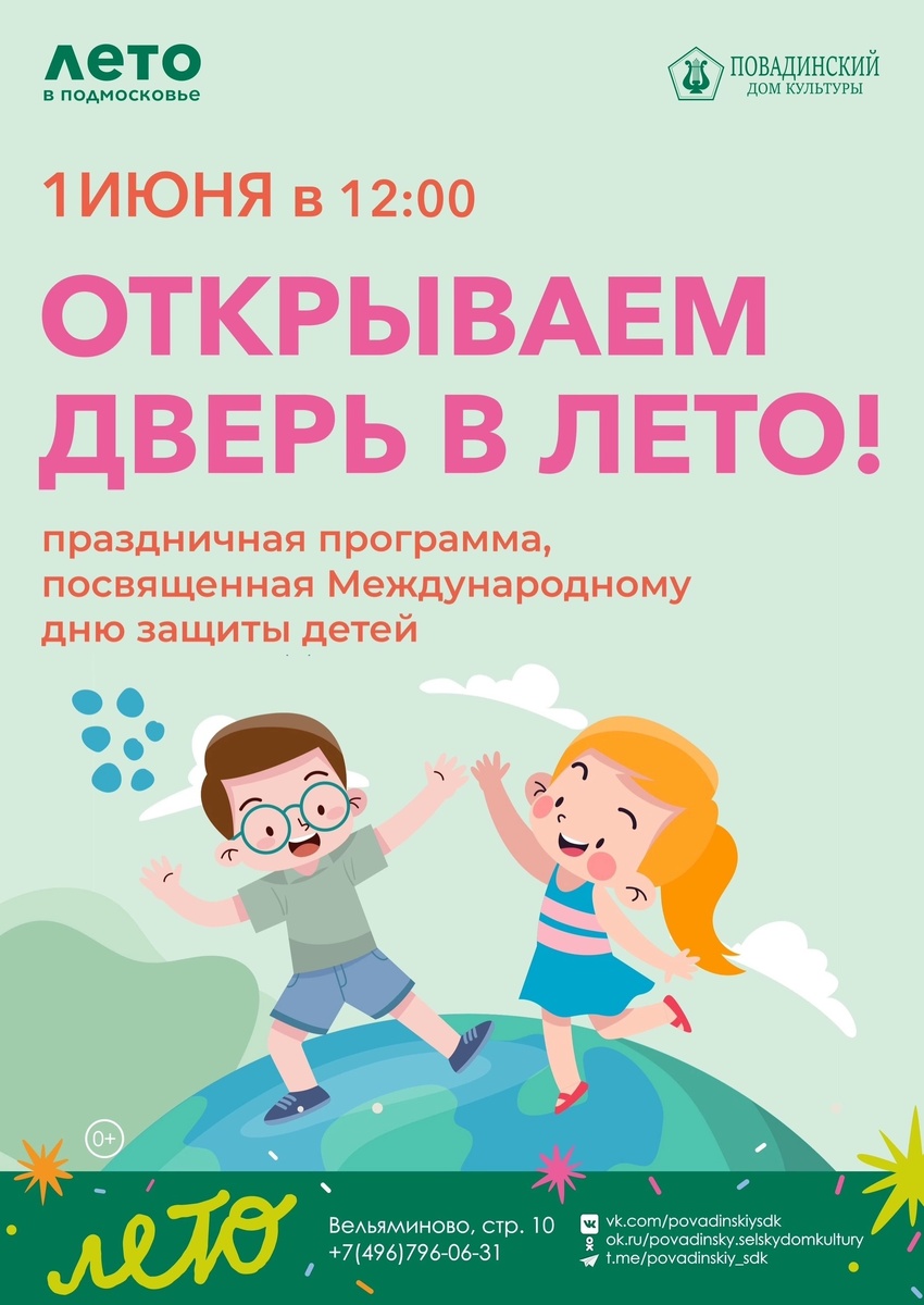 ✨ ☀️ПРИВЕТ, ЛЕТО! Мы приглашаем вас отправиться в увлекательное путешествие и встретить самое жаркое и веселое время года вместе с нами! Все, что требуется от вас, - взять хорошее настроение, задор и прийти на Центральную площадь с. Вельяминово. До встречи!☀️ 🚫 Возраст: 0+ 📆 01.06.2025🕒12:00 🏢 Повадинский сельский дом культуры (СДК) 📍 г.о.Домодедово, с.Вельяминово, 10, Центральная площадь 💰 Вход свободный❗️ ✅ Мероприятия Домодедово https://dzen.ru/id/66f10385cc4c5a16f7b5fb02 http://vk.com/domodedovo_events http://dzen.ru/domodedovo_events