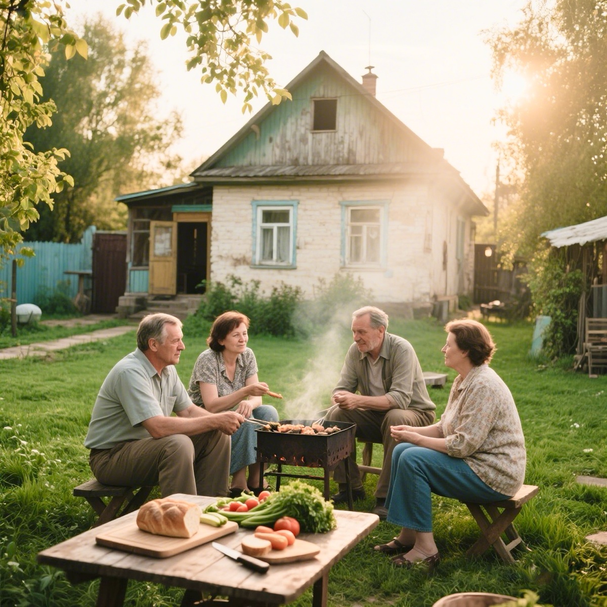 Не успел начаться новый дачный сезон, как их мирный покой резко закончился. И, как назло, как раз когда они жарили ароматные шашлыки на своём новеньком мангале. Лена осторожно переворачивала румяные куски мяса, наслаждаясь процессом, когда железная калитка с грохотом распахнулась, и во двор ввалилась целая шумная делегация — тётя Галя в сопровождении своего молчаливого мужа дяди Коли, дядя Витя с супругой тётей Ниной и двоюродная сестра Ира со своими двумя непоседливыми детьми.