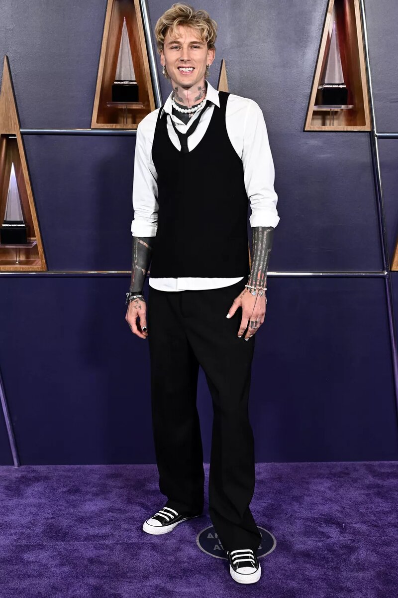 Machine Gun Kelly (он же Колсон Бейкер) появился на красной дорожке American Music Awards, рассказал о своих родительских буднях и поделился интригующими подробностями о новом альбоме. На красной ковровой дорожке 35-летний музыкант поделился редким заявлением о своей двухмесячной дочери. Он воспитывает ее вместе с бывшей девушкой, Меган Фокс. MGK признался, что очень скучает по дочери, у которой небольшая простуда. «Разлука, чувак. У нее небольшая температура, так что я пройду по ковровой дорожке, скажу спасибо фанатам, а потом рвану обратно, чтобы попытаться вылечить ее своими феромонами», – поделился он с ET. От MGK, известного своими эпатажными выходками (вспомним хотя бы историю с питьем крови друг друга), иного и не ожидаешь. Однако, за эпатажем скрывается обычная родительская забота и тревога за больного ребенка. Отношения MGK и Меган Фокс – отдельная тема для обсуждения. Пара, которая в феврале 2023 года была на грани расставания, после объявления о беременности Фокс, казалось,