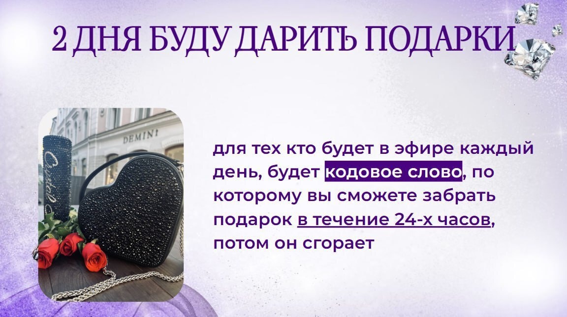 ✨ В течение 2 дней я буду дарить подарки — только для тех, кто присутствует в прямом эфире 💝