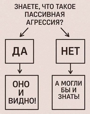 Дискутировали по поводу пассивной агрессии. С одним, но бесконечно дорогим человеком. Диалог пульсировал вокруг дружеских подколов — это пассивная агрессия или нет. Люблю, когда отношения не только серьезны как инфаркт, но и есть место дружеским шуткам и подтруниванию. Хотя на шутки в стиле «прожарки» могу и включить стервозное Альтер-эго. Так в чём же разница? 😍 Пассивная агрессия — это про иерархию в отношениях. Способ установить превосходство, или повысить значимость и ценность. Она направлена в уязвимую часть. Скрывается под «восхищением»: «Классно выглядишь, неужели похудела?» или «Офигеть, ты справляешься, а часики-то тикают». После неё ощущаешь замешательство: сказать спасибо, поржать или пойти отмыться от грязи. 😍 Пассивная агрессия — это про ограниченность общения, невозможность сказать то, что хочется или не устраивает. После неё остаётся послевкусие вины, стыда или растерянности. Она может быть спрятана за стремлением причинять добро ближнему без запроса на него, за ф