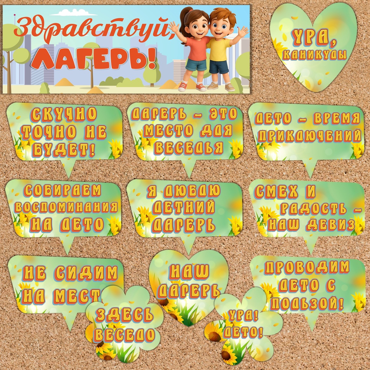 Речевые облачка для летнего лагеря (оформление «Здравствуй, лагерь»)