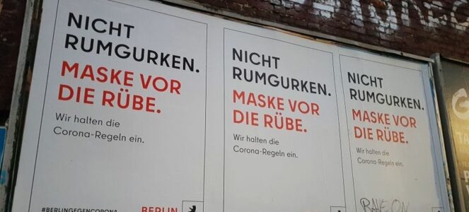 Не знаю чем кому-то не угодили огурцы, но в немецком языке слово «Gurke», помимо своего прямого значения «огурец», может означать старый бесполезный хлам (+ часто так называют старые машины). Звучит странно, но мне приходит на ум слово из русского языка - "батонить", которое мы используем, как синоним слову "лениться". Тоже бессмысленно, но красноречиво! Отсюда сленговые слова, которые вполне себе еще актуальны и даже встречаются в рекламных баннерах: Rumgurken или herumgurken - переводятся как слоняться, бродить или ездить бесцельно, проводить время впустую. Вот, например, интересный плакат с игрой слов, появившийся во время ковидных ограничений: "Nicht rumgurken. Maske vor die Rübe." Плакат призывает не слоняться без дела (rumgurken - слоняться, бродить) и надеть маску на голову, которую здесь иронично назвали репой (die Rübe). А это реклама от каршеринга Mikar: Надпись гласит: „Den ganzen Tag herumgurken? Mikar. So fahren wir besser", намекая, видимо, не слоняться без цели, а испол