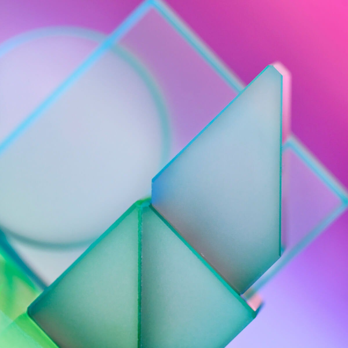 "Моя работа исследует красоту света и цвета. Изображения в представленной здесь работе объединяют эклектичный набор влияний, начиная от геометрического конструктивизма до цветового поля. Собрав ассортимент призм и линз, я заинтересовалась тем, как свет и цвет взаимодействуют с оптическими материалами — как будто они небрежно отражаются от поверхностей, но при этом строго связаны законами физики. Линзы и призмы были наложены слоями и сложены под углом, чтобы запечатлеть свет, обволакивающий форму. Хроматические геометрии возникли из плоскостей и линий цвета, созданных с помощью пленочных гелей. Изображения продолжают линию экспериментальных исследований, изучающих самые элементарные компоненты фотографических процессов: свет и линзы.", - Дебора Бэй (Deborah Bay).