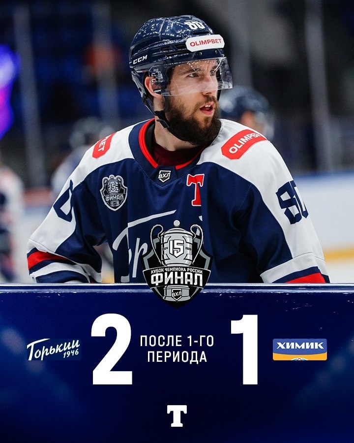 🚨«Торпедо-Горький» в 40 минутах от победы в чемпионате России После первого периода «Торпедо-Горький» выигрывает у «Химика» со счетом 2:1. Первыми счет открыли воскресенские хоккеисты, благодаря шайбе Константина Лукина. На 12-й минуте Никита Шавин сделал счет равным, а на последней минуте периода Даниил Ильин подправил наброс Арсения Варлакова и вывел «автозаводцев» вперед. «Химик» завис на краю пропасти, а нижегородцы в двух периодах от победы в Кубке Чемпиона России. 📸ХК Торпедо-Горький @nhockey
