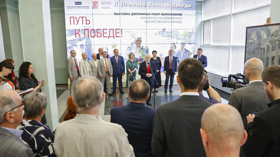 По инициативе фракции “СПРАВЕДЛИВАЯ РОССИЯ – ЗА ПРАВДУ” 27 мая в Госдуме открылась выставка “Путь к Победе”, посвящённая памяти о подвиге советского народа в годы Великой Отечественной войны. В экспозицию вошли лучшие дипломные работы выпускников Московского академического художественного училища на тему войны, созданные в период с 1957 по 2024 год. Председатель партии СПРАВЕДЛИВАЯ РОССИЯ – ЗА ПРАВДУ, руководитель фракции в ГД Сергей Миронов поблагодарил выпускников МАХУ за уникальные работы, подчеркнув, что такие живописные полотна сохраняют традиции и передают память о подвиге народа молодым поколениям. По его словам, именно в этих работах проявляются талант художников, сильные эмоции и элементы, которые пробуждают память и чувства. “Написанные полотна, на мой взгляд, – это лучший вариант памятника великому подвигу. Эта выставка заслуживает большего внимания, я и уверен, что ещё не в одном уважаемом учреждении эта выставка должна быть представлена как образец живописного памятника и