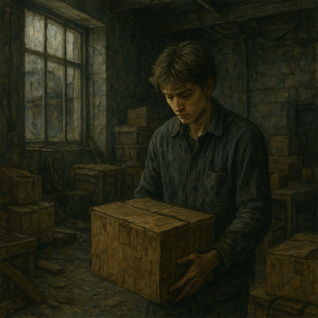 Это было не место, а разваливающийся мир. Трущобы в бетоне. Грязь, хаос, мусор. Я таскал ящики, разбирал поставки, убирал, отмечал, тянул, поднимал, чистил. Иногда задерживался на четыре часа сверх смены — просто потому что некому было делать мою работу. Я не чувствовал ни смысла, ни цели.