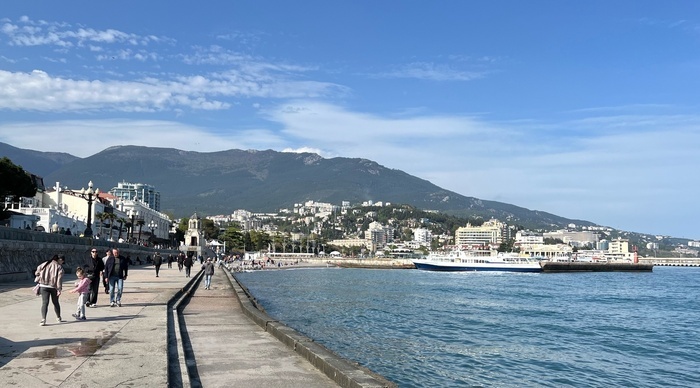 После обеда выходим на набережную. На какой-то момент показалось, будто ты снова в Крыму 00-ых в высокий сезон в худшей интерпретации: запах шашлыка, зазывали на морские теплоходные прогулки, кто-то поет что-то про войну, кто-то - бессмертный попсовый хит “Ялта…Парус..”, и все это сопровождается косяками людей. Впрочем, ширина набережной и все-таки майская, а не июльская погода быстренько развеяли негативный флэшбек.