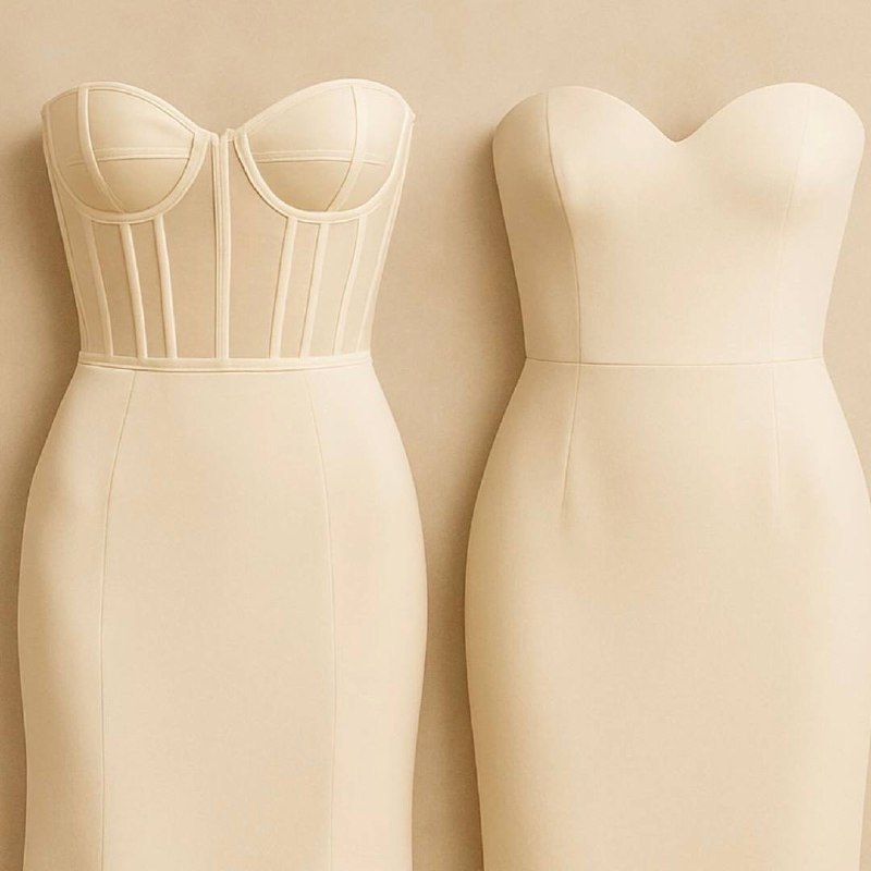 Тело знает разницу: корсетное платье vs. бюстье Знаете, что объединяет корсет и бюстье? Оба красиво подчёркивают фигуру и открывают плечи. А вот что их разделяет — почувствует каждая девушка уже на первой примерке. Корсетное платье: – В основе — жёсткий каркас, часто с металлическими косточками – Создаёт чёткую талию и поддержку груди – Часто фиксируется шнуровкой или потайной молнией – Подходит, если хочется эффект «вау» и уверенности в каждой детали – Отличный вариант для невест и выпускниц, особенно с пышной юбкой Платье-бюстье: – Без бретелей, но более мягкое по конструкции – Может иметь чашки и лёгкий корсет внутри, но не утягивает – Создаёт женственный, расслабленный силуэт – Часто используется в летних или вечерних платьях – Подходит для образов, где важны комфорт и лёгкость Выбор — всегда про ощущение. Корсет — когда хочется ощущать силу и поддержку. Бюстье — когда важно лёгкое дыхание и мягкая посадка. А вы что выберете? Корсет с характером или бюстье с шёлковым настроением