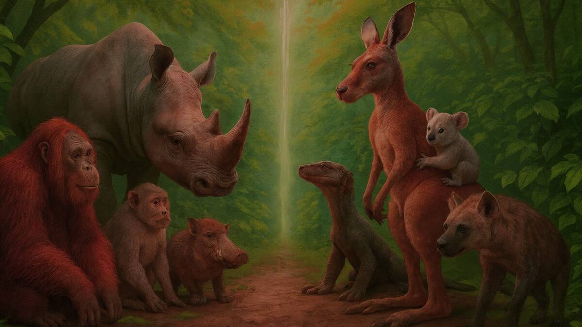 Вот и получилось: один мир развивался здесь, другой – там. Без пересечений. Без смешений. Только параллельные пути эволюции. Сумчатые, рептилии, гигантские птицы – на одной стороне. Обезьяны, кошки, копытные – на другой. Две вселенные. Два мира.