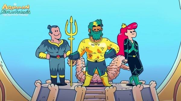 Название в оригинале: Aquaman: King of Atlantis Жанр: комедия, фэнтези Режиссер: Кит Пакиз Роли озвучивали: Купер Эндрюс, Гиллиан Джейкобс, Томас Леннон, Дэна Снайдер Продолжительность: 3 серии по 45 минут Производство: США Дата выхода: 2021 год Трехсерийное мультяшное шоу "Аквамен: Король Атлантиды" - один из тех мультфильмов, которые непонятно почему представлены в виде шоу, ведь по продолжительности весь мультсериал вполне укладывается в продолжительность полнометражного мультфильма. Так или иначе, мультсериал является продолжением полнометражного фильма "Аквамен" и рассказывает о первых днях Артура Карри на престоле короля Атлантиды. Соответственно, Карри, который ранее жил в мире обычных людей, а не в Атлантиде, на королевском престоле сталкивается с огромным количеством проблем. Сам Аквамен здесь, естественно, не классический блондин, привычный по другим мультфильмам, а бородатый здоровяк а ля Джейсон Момоа. Сам мультфильм ориентирован на взрослую аудиторию и сделан в довольно ко