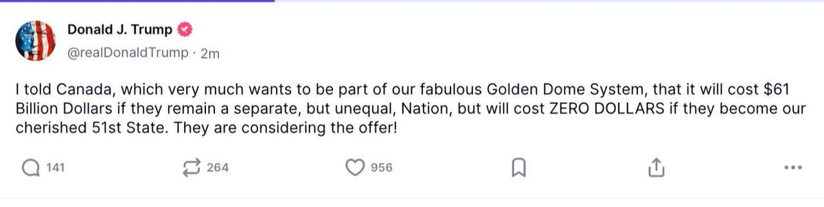 Canada ‘CONSIDERING’ offer to become 51st US state — Trump