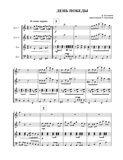 https://partitur.ru/Ensemble/Д.Ensemble.html Новая партитура ‼️"День Победы" Д.Тухманов. Инструментальное переложение песни для квартета Домр. Стоимость партитуры смотрите в начале этого поста по ссылке, на сайте Partitur.ru