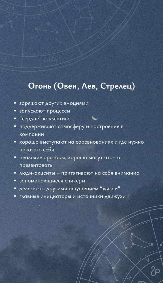 🌟 Какая работа вам легче дается? 🌟 Сегодня посмотрим на знаки зодиака через их призму стихий. Есть – водные, воздушные, огненные и земные. Они объединены по принципу своей природы, направленности. Мы можем увидеть, что, например, Овен, Лев и Стрельцы по своей сути в чем-то схожи и эта схожесть идет от их стихии. Так вот в работе наш Солнечный знак, а точнее его стихия, может подсказать, какие задачи нам даются проще остальных, потому что мы от природы к ним более предрасположены. 🌟 Читайте в карточках информацию про себя и пишите, какие задачи на работе вы любите?