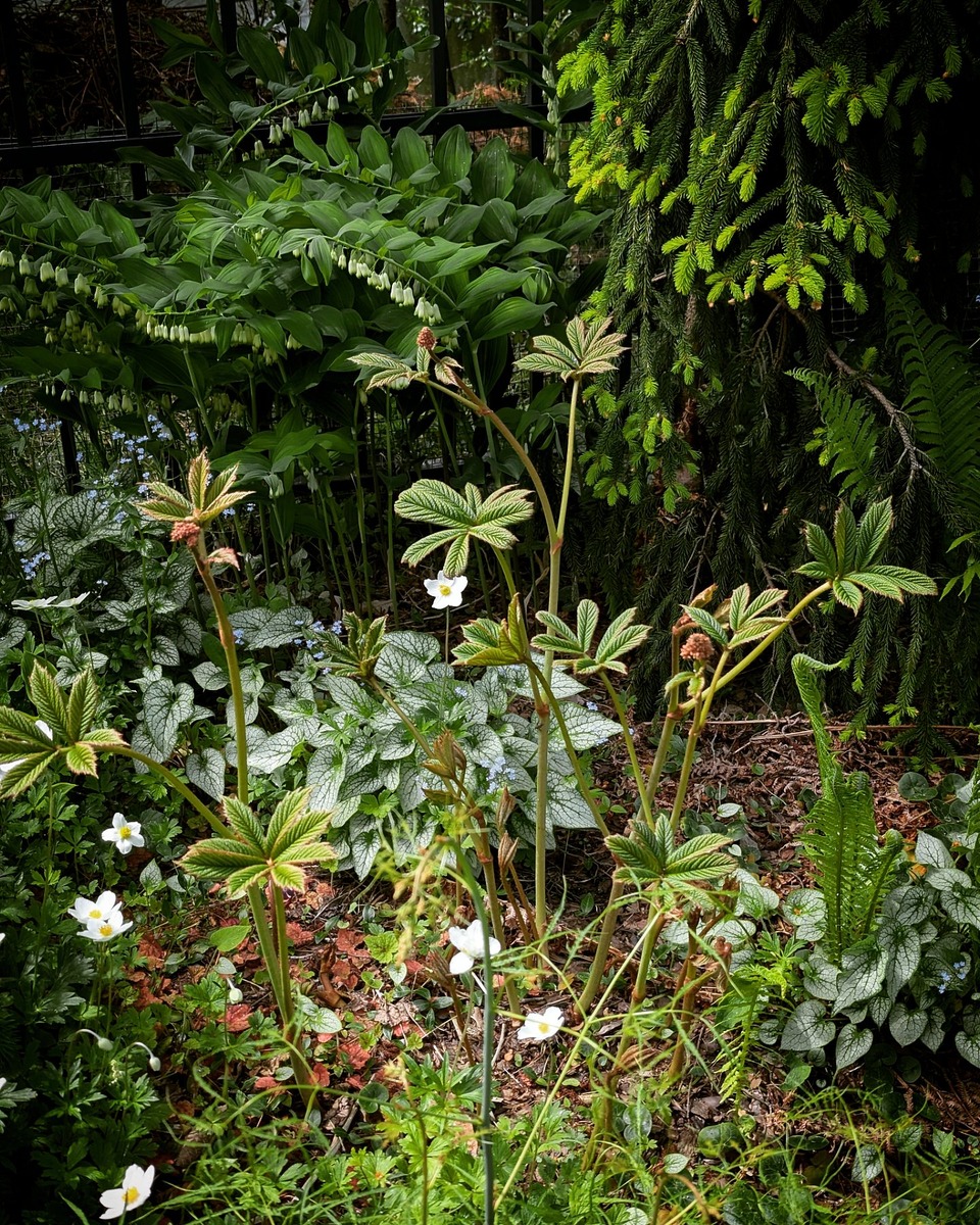 В саду сейчас так хорошо, что лучше просто не бывает. Выходишь - и на тебя набрасываются запахи, птичьи трели. Буйство зелени, буйство красок, буйство свежести. Прекрасная магнолия. С каждым днём цветки всё крупнее, и вживую они кажутся крупнее, чем на фото Прекрасный рододендрон. Весной мы позволяем себе буйство красок, к июлю сад погрузится в зелёный монохром Азалия: Сирень: Невероятно хороша в цветении в этом году рябина скандинавская: Куда ни глянь - везде что-то цветет, везде красиво: Флоксы шиловидные очень хороши в тимьяне. Многие говорят, что листва у них некрасивая, но в тимьяне её не заметно. Флоксы вспыхивают, только когда цветут: На переднем дворе тоже хорошо, несмотря на то, что это новодел: На большом белом камне растут какие-то очитки, их я не трогаю: Что-то луковичное: Что-то вот такое: И всякая трава-мурава: Лютик, клевер, мокрицу, одуваны, и ещё всякую травищу я выпалываю. Хочу попробовать подсадить камнеломку метельчатую, и на этом пока всё, понаблюдаю за