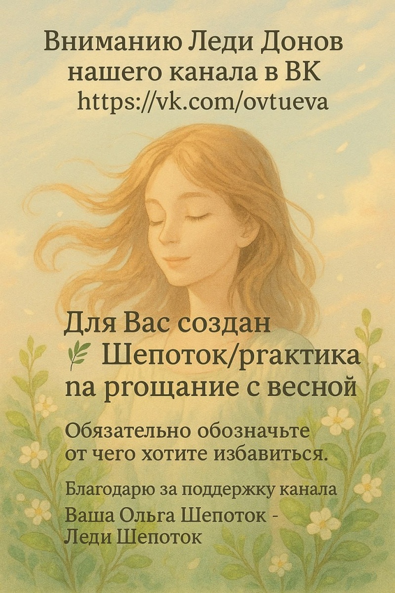 Драгоценные Леди-Доньи, Специально для вас открыта 🌿 шепотковская практика на прощание с весной 🌿 — нежный ритуал для мягкого очищения и подготовки к новому периоду.