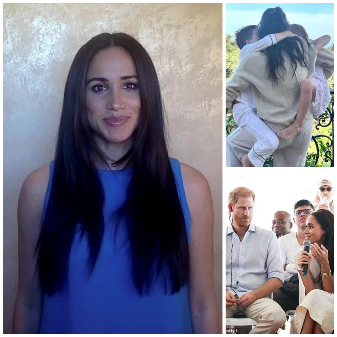 «Меган Маркл шутит, что стала похожа на Эльвиру после того, как использовала коробку краски для волос во время панде Мии» и сделала подпись: