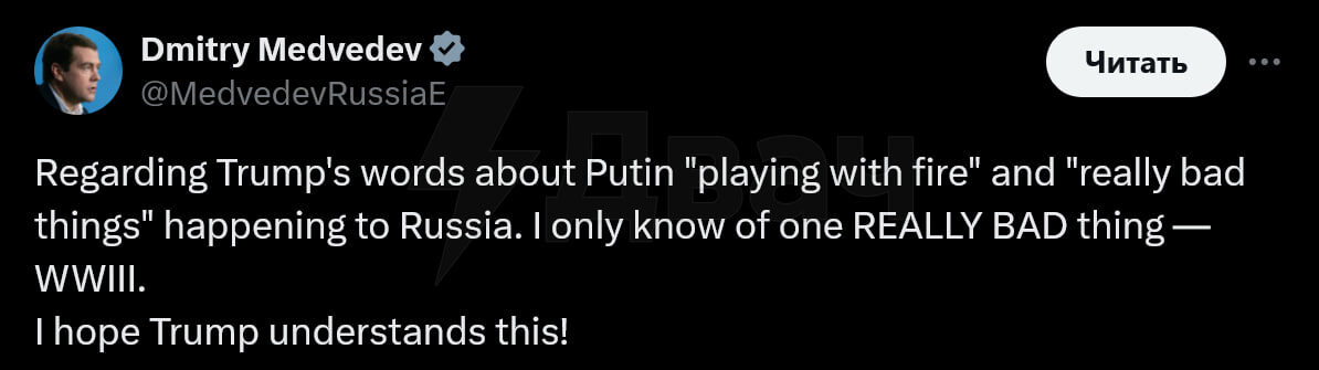 Медведев ответил на угрозы Трампа о том, что без него с Россией якобы случились бы «действительно плохие вещи».