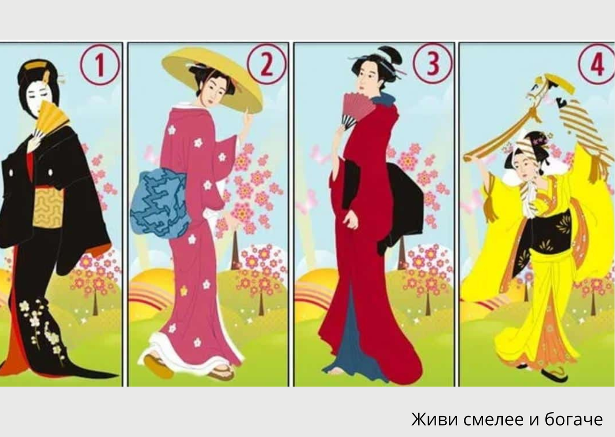 Хотите заглянуть внутрь своего характера и увидеть, как другие люди оценивают вашу личность? Тогда попробуйте простой, но эффективный психологический тест с рисунками гейш! Всего лишь выберите одну картинку из предложенных ниже, и получите уникальное описание вашей личности глазами окружающих.