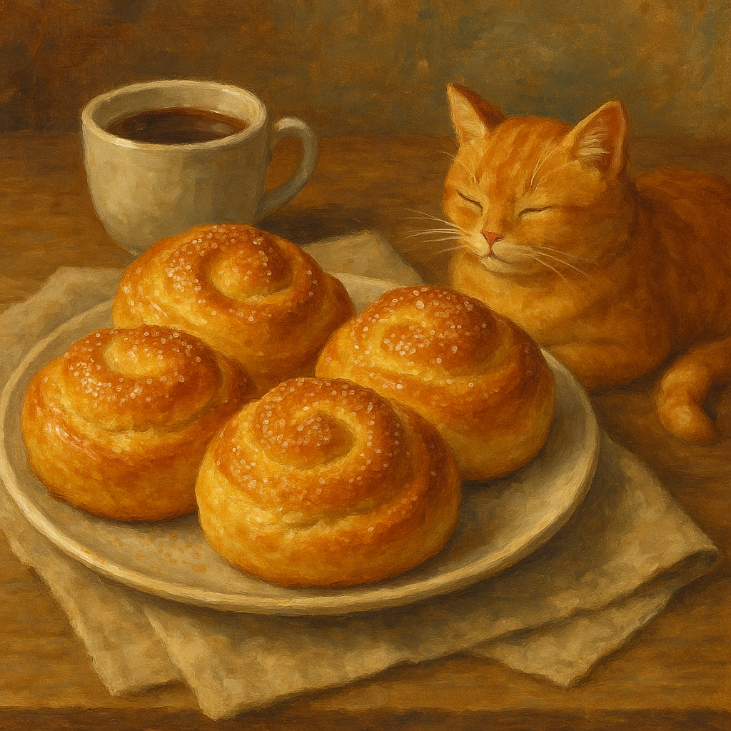 Секрет в балансе: воздушное тесто, настоящая ваниль и капля масла, которая превращает обычную булку в маленькое чудо. Не нужно ничего выдумывать — всё уже придумано: тёплое молоко, яйцо, дрожжи, сахар, ваниль и мука. И щепотка терпения. Как добиться хрустящей корочки?