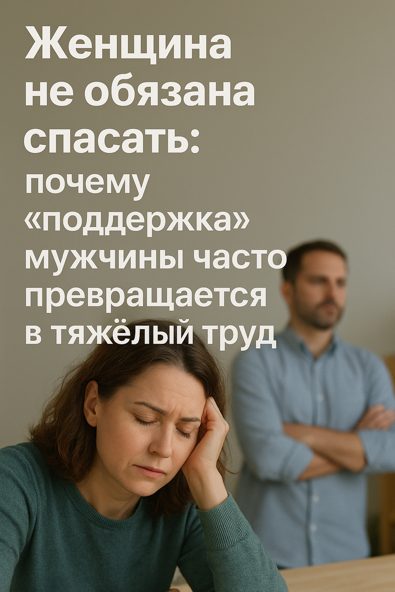 Что мужчина — это ребенок 2.0, которого нужно растить. Только уже с ипотекой и кризисом среднего возраста. Женщина — не терапевт, не наставник и не кредитная организация.