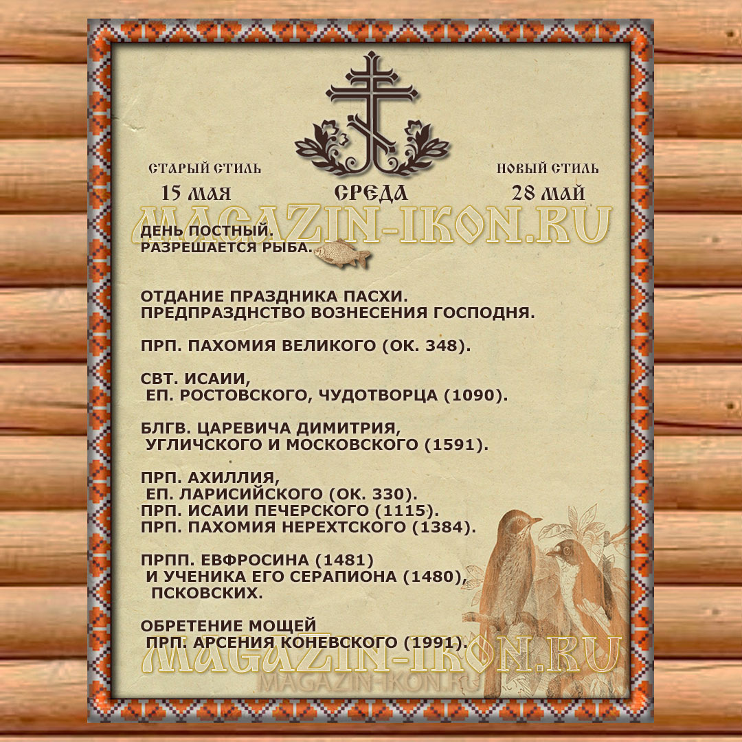 Православный церковный календарь 👉28 мая 2025 года от Р.Х.🕯