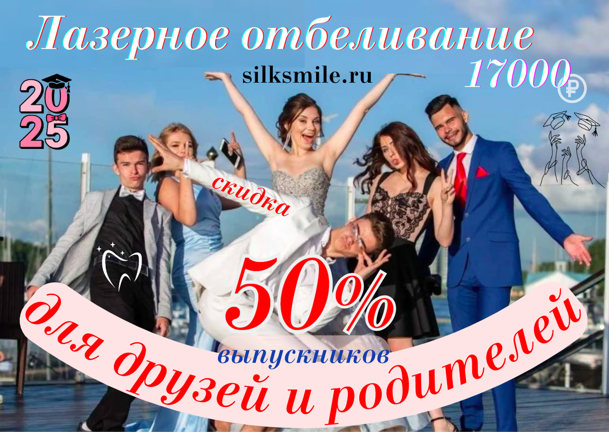 🌸 Выпускной — как первая любовь: волнительно, нежно и навсегда. 🌟А улыбка в этот вечер — как автограф вашей юности. ✨ Лазерное отбеливание за 17 000₽ — чтобы каждый кадр был светлым, как ваши мечты. И если с вами — мама, папа или близкий друг, им — 50% скидка. Потому что радость хочется делить с теми, кто рядом. 📖 Страницы взросления — это не только наряды и речи. Это ощущение, что всё только начинается. Сделайте этот день идеальным — до последней улыбки. 📩 Запишитесь заранее — чтобы встретить вечер с лёгкостью и блеском. 👪 С любовью и заботой о вас и ваших детях, ваш любимый ортодонт и главный врач клиники СИЛК-СМАЙЛ, Елена Лещук❣️